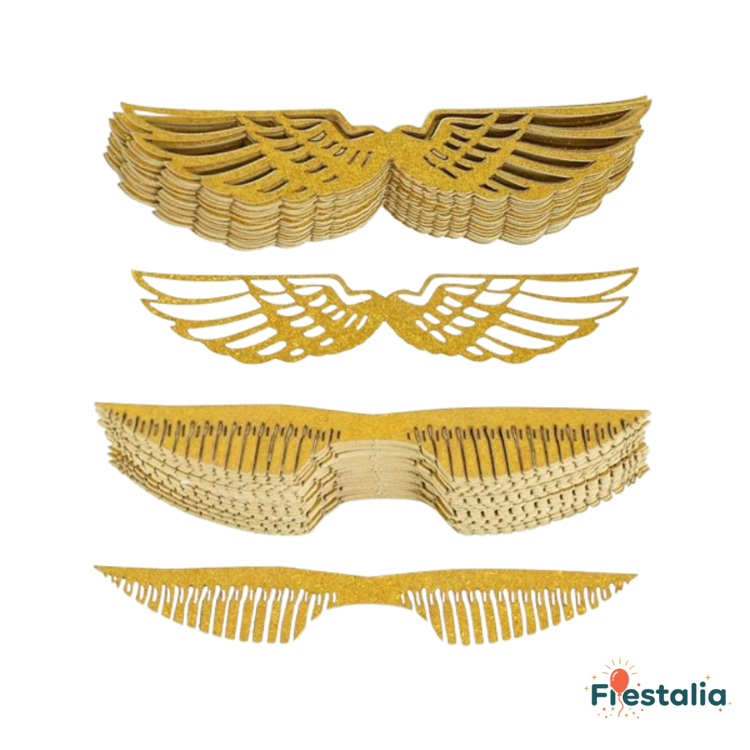 Alas de purpurina doradas para postres en bodas y cumpleaños