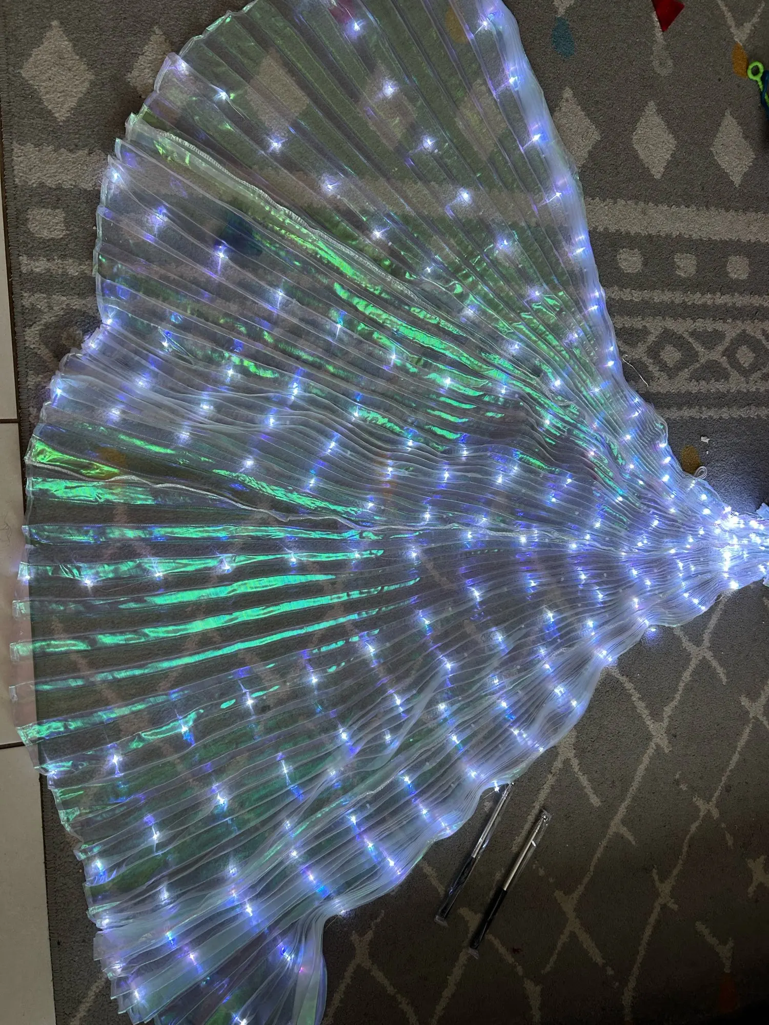 📦 Incluye: 1 capa/alas iluminadas LED + 2 palos telescópicos.