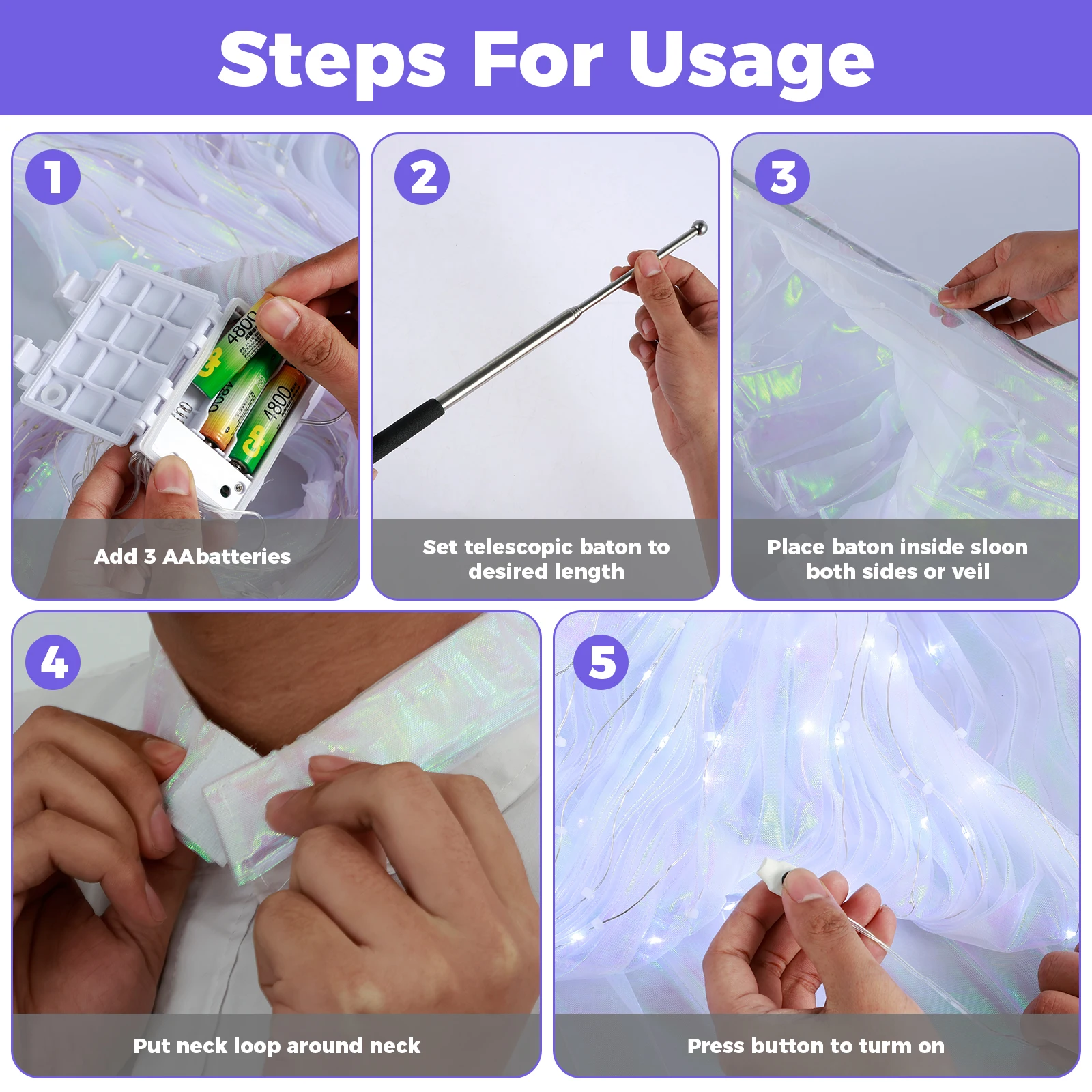 - Sus 240 luces LED crean un efecto mágico, ideal para animadores, bailarinas o novios que quieren destacar.