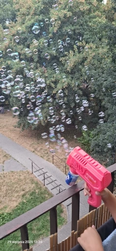 Haz que cada celebración sea aún más especial con esta pistola de burbujas automática. Añade un toque mágico y divertido que encantará a todos los invitados. ¡Pulsa, dispara y deja que las burbujas llenen el aire de alegría!